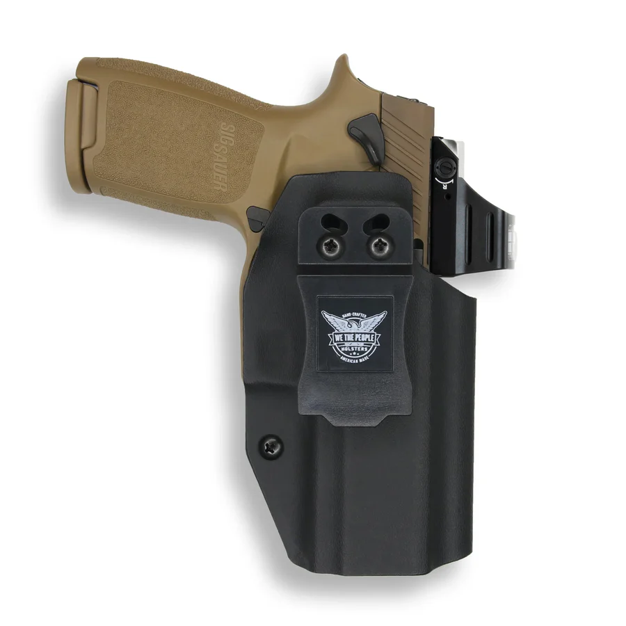 An exceptionally lightweight and practical all-around option for concealed carry, this holster is hand-molded in the United States for use with the Sig Sauer P320C 9MM/.40SW Manual Safety Red Dot Optic Cut.